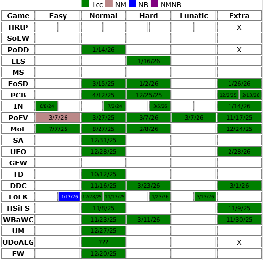 My current Touhou completion chart: